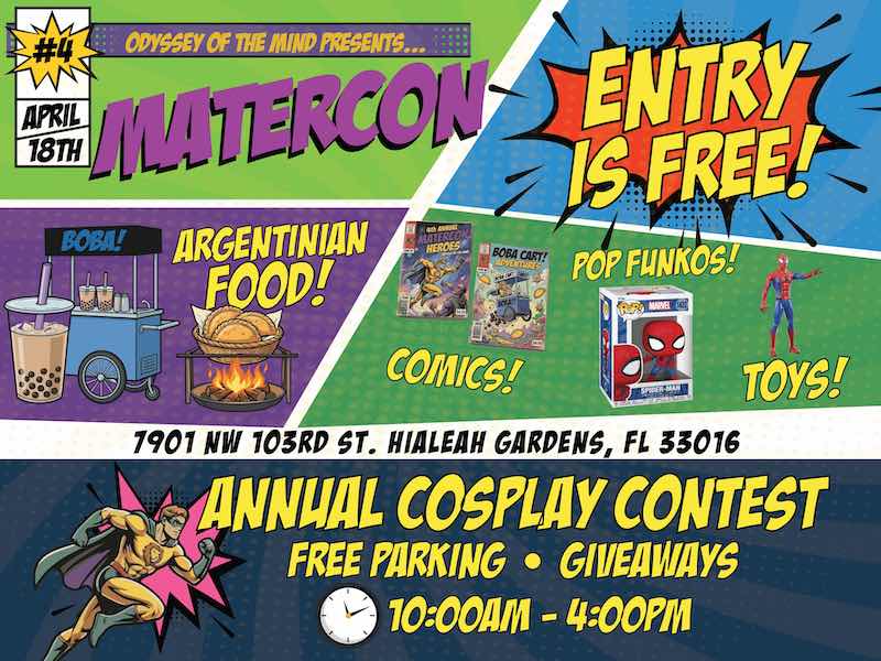 Saturday, February 28, 2026, 10am-5pm, BEYOND COMICON, YEAR 5 A creator focused, family-friendly, and community centered event, presented by Gmoss Designs, LLC, located at the Marjorie & William McDonald Center in North Miami Beach, Florida. Admission to the convention is $ 5 on eventbrite, children 12 years and under attend for FREE with paid adult, and PARKING IS FREE.