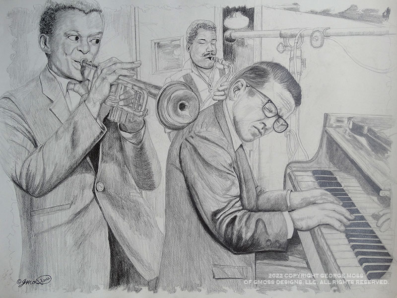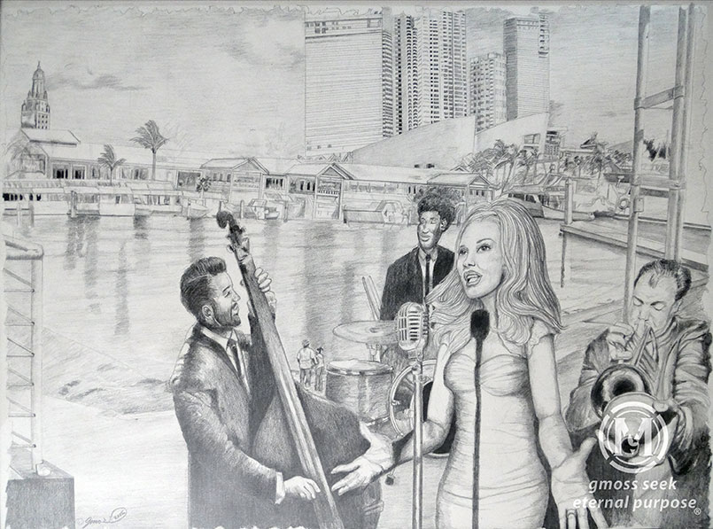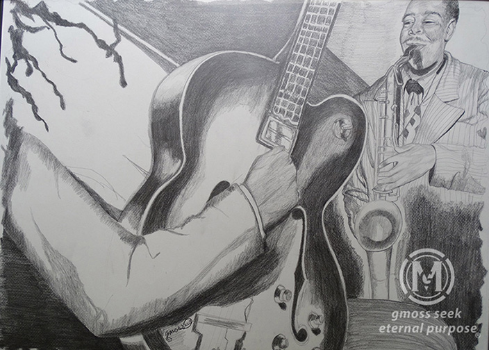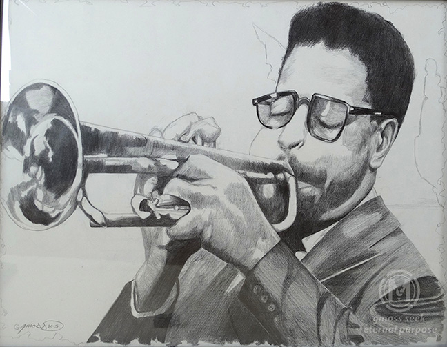 Original jazz art collection titled, “A Tribute To The Great Jazz Artists”, was exhibited in the WDNA Radio 88.9 FM Jazz Art Gallery. This art collection was inspired by his favorite jazz musicians from the 1930s and 1940s. All illustrations were drawn with pencil on paper.