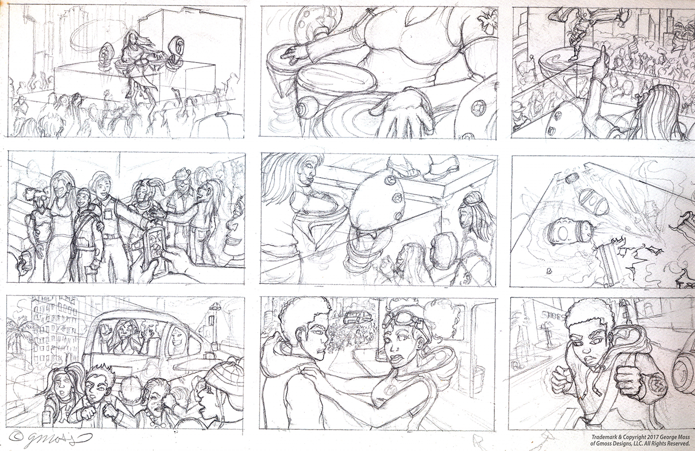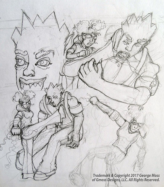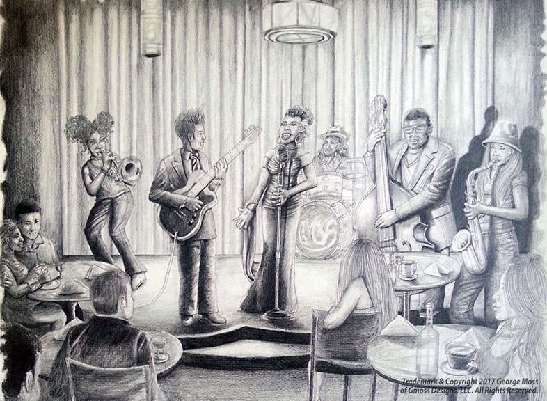 Here are pencil sketches and drawings of portraits, musicians, jazz art scenes, music album cover art, character designs, comic book art, and storyboards that I have created. My favorite tool is my pencil.